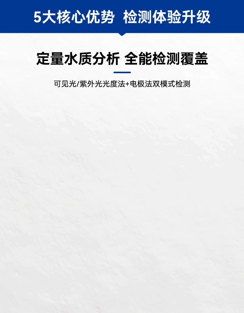 4、190nm-1100nm全波段檢測(cè),支持光度測(cè)量、多參數(shù)測(cè)定儀、紫外總氮及電化學(xué)功能,支持1-3cm比色皿及φ16mm管比色,滿足多樣化水質(zhì)檢測(cè)需求;